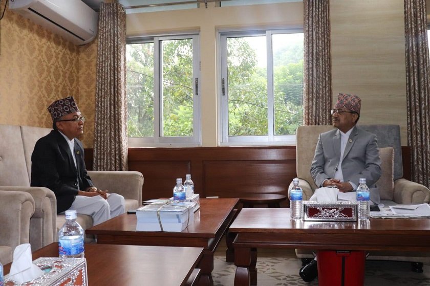 काठमाडौँ । उपप्रधानमन्त्री एवम् रक्षामन्त्री पूर्णबहादुर खड्का र प्रमुख निर्वाचन आयुक्त दिनेशकुमार थपिलयाबीच भेटघाट भएको छ । भेटमा निर्वाचनसम्बन्धी आवश्यक कानुनबारे छलफल भएको उपप्रधानमन्त्री खड्काको सचिवालयले जनाएको छ ।