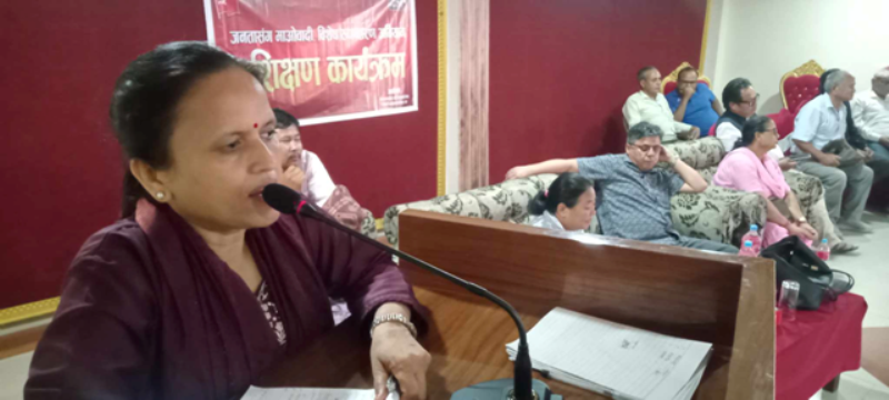 पार्टीले विकास निर्माणलाई प्राथमिकतामा राखेको उल्लेख गर्दै उनले विचारसहितको विकासलाई जोड पनि आग्रह गरिन् । शान्तिपूर्ण बाटोबाटै समाजवादी क्रान्ति गर्ने धेयका साथ पार्टी अघि बढेकाले अब हरेक नेता कार्यकर्ताले संविधान, कानुन, बजेट निर्माण, कार्यान्वायन र मूल्यांकन प्रक्रियालाई ध्यान दिनुपर्ने बताइन् ।