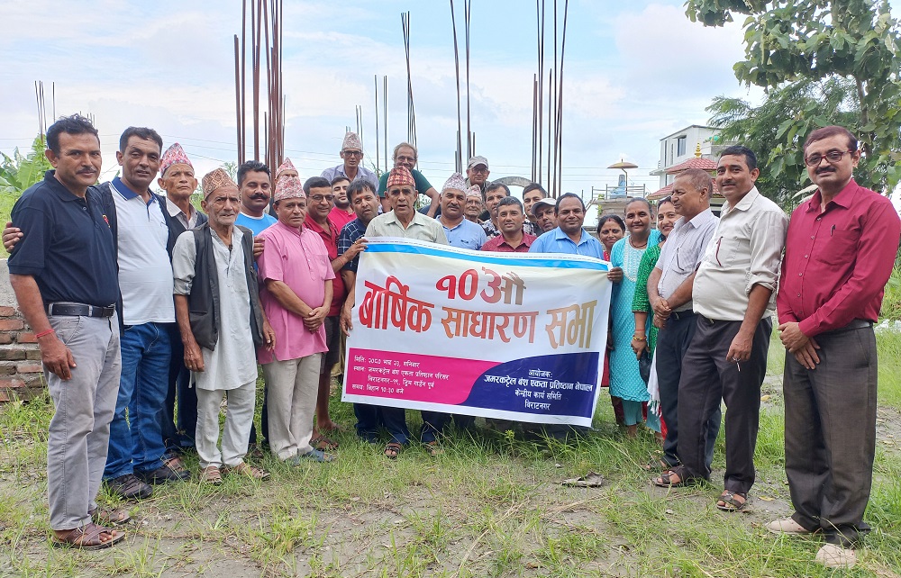 विराटनगर । जमरकट्टेल वंश एकता प्रतिष्ठान केन्द्रिय कार्यसमिति विराटनगरको १० औं वार्षिक साधारण सभा शनिवार सम्पन्न भएको छ । विराटनगर–१९ बैजनाथपुरस्थित प्रतिष्ठानको केन्द्रिय कार्यालयमा साधारण सभा गरिएको हो ।