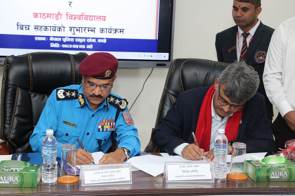 प्रहरी महानिरीक्षक बसन्त बहादुर कुँवर र काठमाडौं विश्वविद्यालयका उपकुलपति प्रा.डा. भोला थापाले नेपाल पुलिस स्कुल साँगामा आयोजित एक समारोहबीच आइतबार उक्त सम्झौता-पत्रमा हस्ताक्षर गरेका हुन् ।