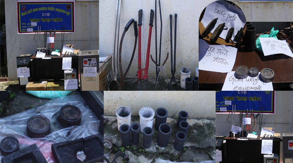 तस्करहरूले सुन गाल्ने भाँडाहरू, सुन गाल्न प्रयोग हुने केमिकल, ब्रेकसुलगायतका सामान प्रयोग गरेको सिआइबीले जनाएको छ ।