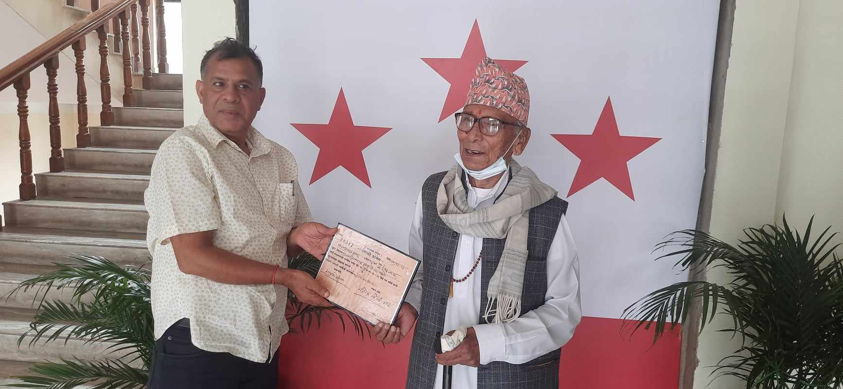 काठमाडाैं । गुल्मी जिल्लाको रेसुङ्गा नगरपालिका १ निवासी ९० वर्षीय मथुरा प्रसाद श्रेष्ठले आफूले २००७ साल चैत्र २६ गते प्राप्त गरेको नेपाली कांग्रेसको सदस्यता रेकर्डका लागि कांग्रेस मुख्यालयमा बुझाएका छन् ।