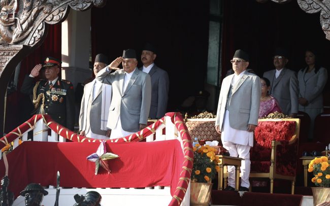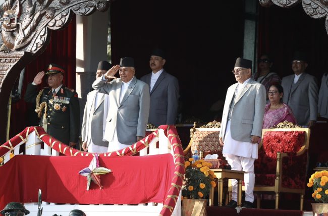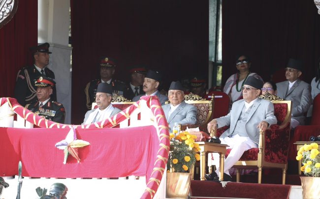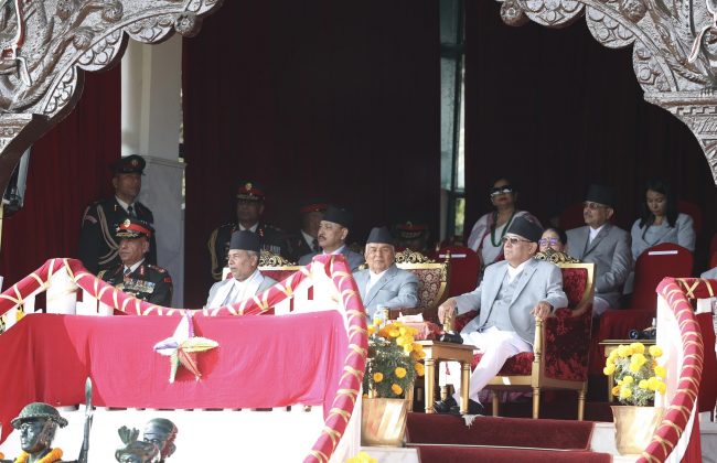 नेपाली सेनाले सैनिक मञ्च टुँडिखेलमा हर्ष बढाईंमा राष्ट्रपति रामचन्द्र पौडेल, प्रधानमन्त्री पुष्पकमल दाहाललगायतका विशिष्ट व्यक्तित्वहरुको सहभागिता रहेको छ।