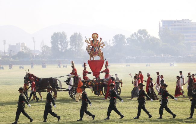 काठमाडौं। बडादशैंको साताैं दिन, फूलपातीका अवसरमा नेपाली सेनाले सैनिक मञ्च टुँडिखेलमा फूलपाती बढाइँ विशेष समारोह आयोजना गरेको छ।