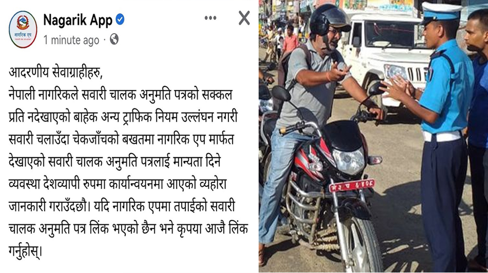 यसअघि ट्राफिक प्रहरीले चालक अनुमतिपत्र भए/नभएको जाँच गर्ने बेलामा पनि सक्कलै देखाउनुपर्ने बाध्यता रहेकाे थियो । तर अब नागरिक एपमार्फत देखाउँदा हुने भएको हो ।
