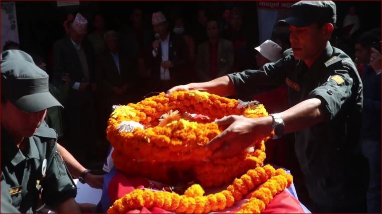 कोलिनको पार्थिव शरीरमा पोखरा महानगरपालिकाका प्रमुख धनराज आचार्यले राष्ट्रिय झन्डा ओढाए ।