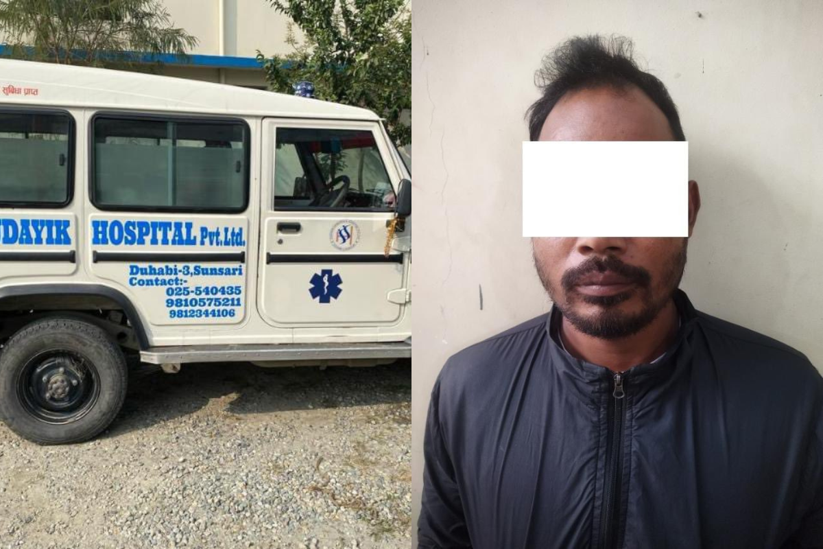 यस्तै को १ च ४१५८ नम्बरको एम्बुलेन्स चालक मोरङ जिल्ला रतुवामाई नगरपालिका ५ बस्ने वर्ष २९ को सफल मुर्मु सतारले मादक पदार्थ सेवन गरी एम्बुलेन्स चलाई को २५ प २३६८ नम्बरको स्कुटरलाई ठक्कर दिनुका साथै अन्य मोटरसाइकल र पसलको सटरमा समेत क्षति पुर्याएको पाइएपछि पक्राउ गरी उनलाई पनि अभद्र व्यवहार कसुर अन्तर्गत अनुसन्धानपछि जिल्ला प्रशासन कार्यालय मोरङबाट १० हजार धरौटी माग गरिएको छ।