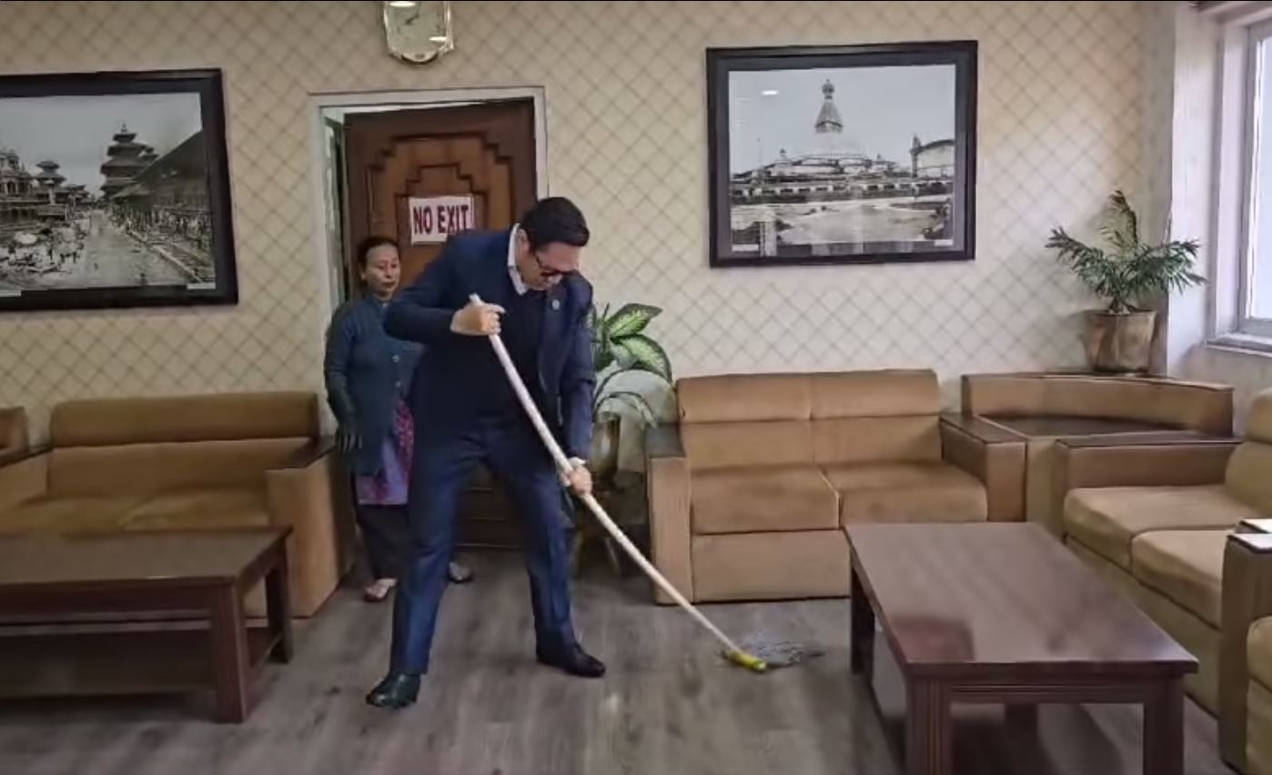 काठमाडौँ । संस्कृति, पर्यटन तथा नागरिक उड्डयन मन्त्री सुदन किरातीले मन्त्रालयको कार्यकक्षमा आफैँ सरसफाइ गरेका छन् । उनले समाजिक सञ्जालमा भिडियो सार्वजनिक गर्दै बिहानी पख आफ्नै कार्यकक्ष शृङ्गार गरेको उल्लेख गरेका छन् ।