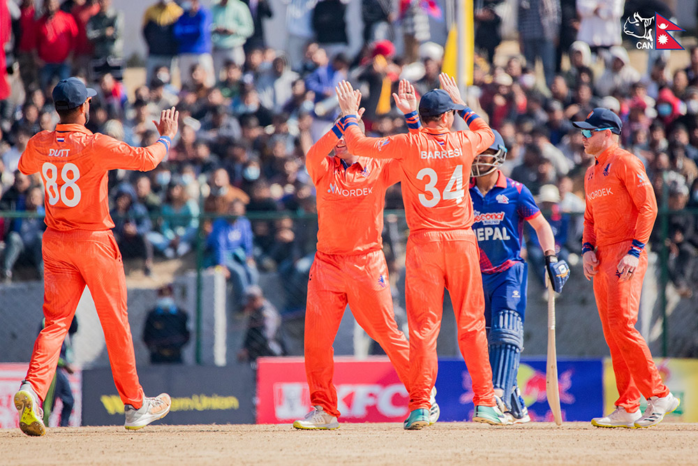 काठमाडौँ । नेदरल्याण्डसले नेपाललाई २ रनले पराजित गरेको छ । नेदरल्याण्डसले जितका लागि दिएको १८५ रनको लक्ष्य पाएको नेपालले २० ओभरमा ८ विकेट गुमाउदै १८२ रन बनाएपछि खेल २ रनले हारेको थियो ।