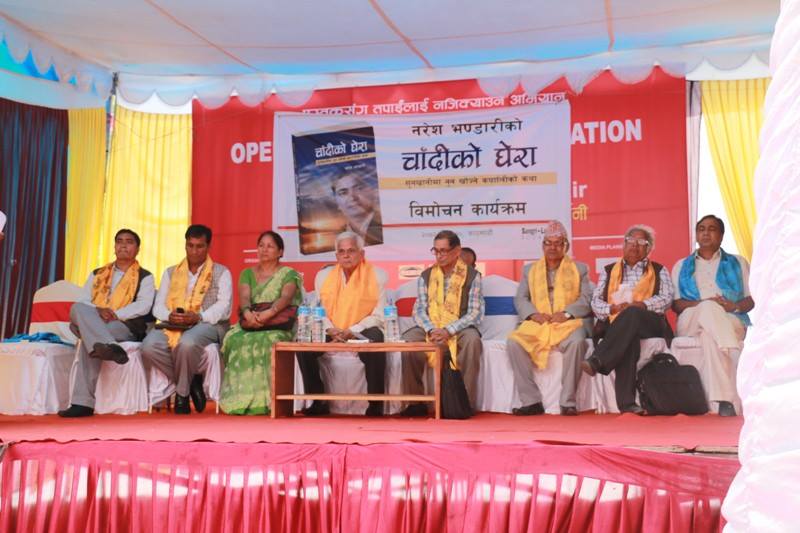 \"chadikoकाठमाडौं । नेकपा माओवादीका अध्यक्ष मोहन वैद्य ‘किरण’ ले देशमा उत्पन्न समस्याको सामाधान बन्दुक नभएर वार्ता हुने बताएका छन् । लेखक तथा पूर्व सभासद नरेश भण्डारीद्वारा लिखित कृति ‘चादीको घेरा’ को बिहीबार भृकुटिमण्डपमा विमोचन गर्दै उनले यस्तो बताएका हुन् । ‘अहिले कुनै पनि समूह वा शक्ति वन्दुकबाट डराउने वाला छैन, वन्दुक देखाएर तर्साउनुको साटो शान्तिपूर्ण बाटो अबलम्बन गरी असन्तुष्ट पक्षसँग सरकारले वार्ता गराेस ।’– वैद्यले भने । कार्यक्रम बोल्दै उनले समस्याको समाधान बन्दुक नभई वार्ता नै भएकाे उल्लेख गर्दै कैलालीमा सेना परिचालन गर्नुको तुक नभएको बताए । अध्यक्ष वैद्यले लेखक भण्डारीको जिवनमा आधारित कृतिले कर्णालीवासीको वास्तविकतालाई झल्काएको उल्लेख गरे । ‘कर्णालीवासीले भोगेको अभाव र चुनौती कृतिमा समेटिएको छ ।’ कार्यक्रमका अर्का बक्ता नेकपा एमालेका नेता एवम् पूर्व उपप्रधानमन्त्री भरतमोहन अधिकारीले भण्डारी जस्ता लगनशिल र राष्ट्रप्रेमी व्यक्तित्वको आवश्यक्ता सधै रहने उल्लेख गरे । अधिकारीले पुस्तक लेख्ने हरेक व्यक्तिले सुधार गर्दै पुस्तकका माध्यमबाट समाज र देशलाई नै केहि दिन सकिने तिर बढी ध्यान दिनुपर्नेमा जोड दिए ।