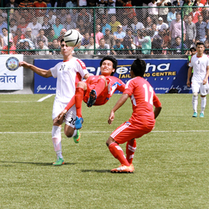 बिहीबार भएको नेपाल र अफगानिस्तानबिचको सेमी फाइनल साफ १९ वर्ष मुनिको पुरुष फुटबल च्याम्पियनसिप खेल । तस्बिरः प्रदीपराज वन्त,रासस \"footbol\"