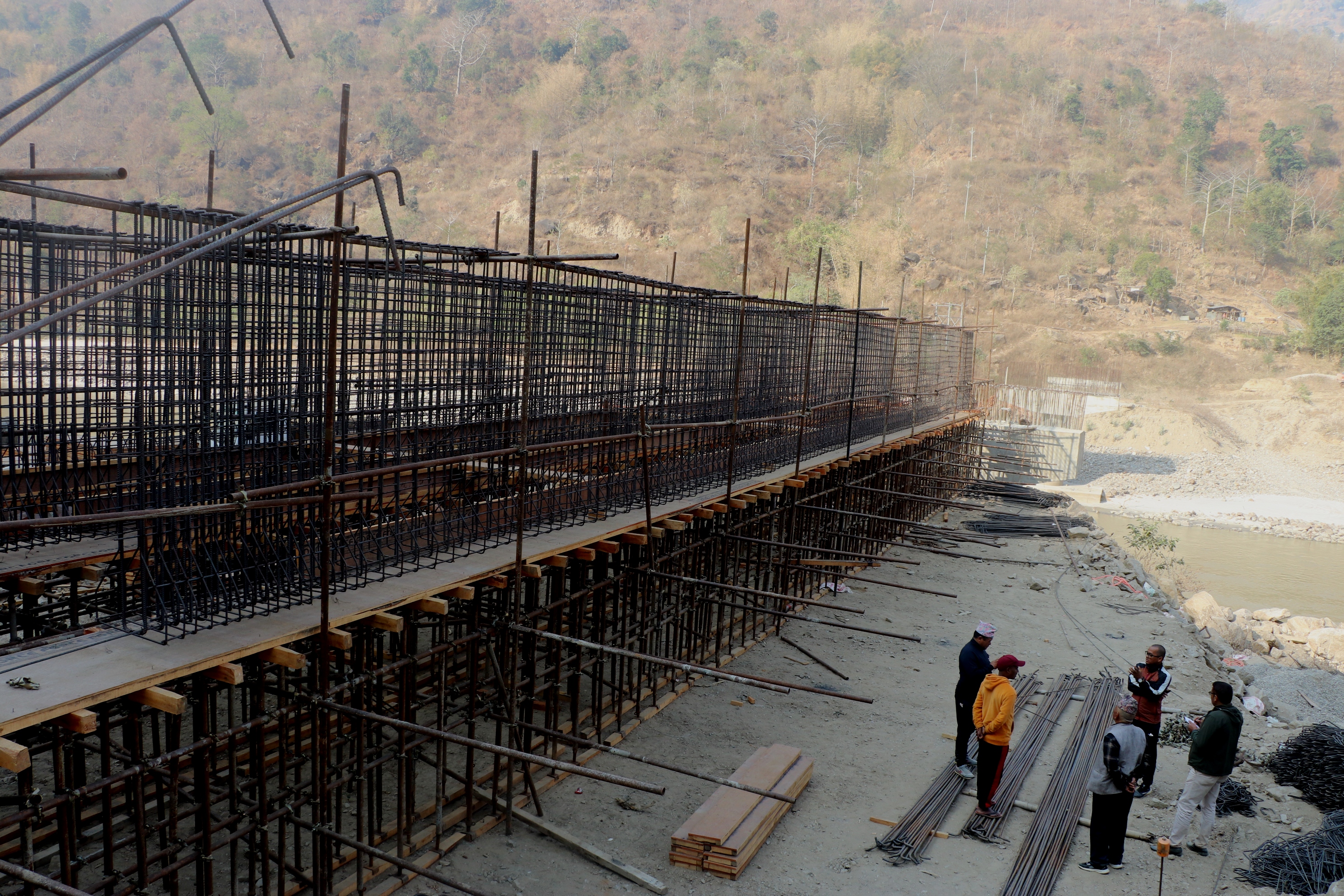 पहिलो इस्पानको ढलानको तयारीका साथ आवश्यक काम भइरहेको निर्माण कम्पनीले जनाएको छ । यो इस्पानको रड बिछ्याउने तथा फर्मा राख्ने काम अन्तिम चरणमा पुगेको ‘साइट इन्चार्ज’ नारायण चौधरीले जानकारी दिए ।