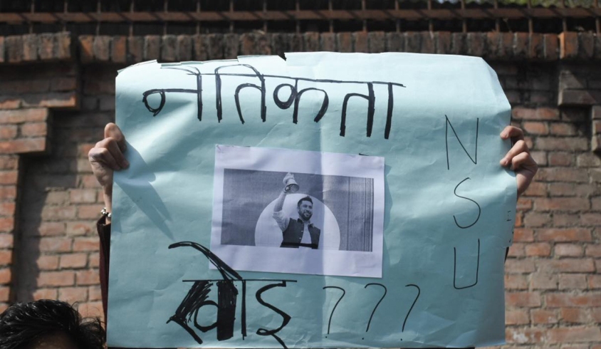 काठमाडौं । नेपाल विद्यार्थी संघ (नेविसंघ) ले उपप्रधानमन्त्री एवम् गृहमन्त्री रवि लामिछानेविरुद्ध प्रदर्शन गरेका छन् । सिंहदरबार अगाडि प्रदर्शन गरिरहेका सहभागीलाई प्रहरीले नियन्त्रणमा लिएको छ ।