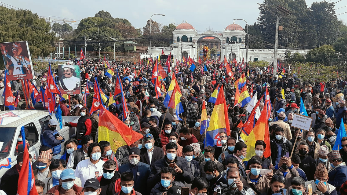 काठमाडौं । राप्रपाले आज काठमाडौंमा बृहत जनप्रदर्शन गर्दैछ। गत ९ फागुनमा प्रधानमन्त्री पुष्पकमल दाहाल प्रचण्डसमक्ष ४० बुँदे माग राखेर आन्दोलनमा होमिएको राप्रपाले यसको उत्कर्षस्वरुप काठमाडौंमा शक्तिप्रदर्शन गर्न लागेको हो ।
