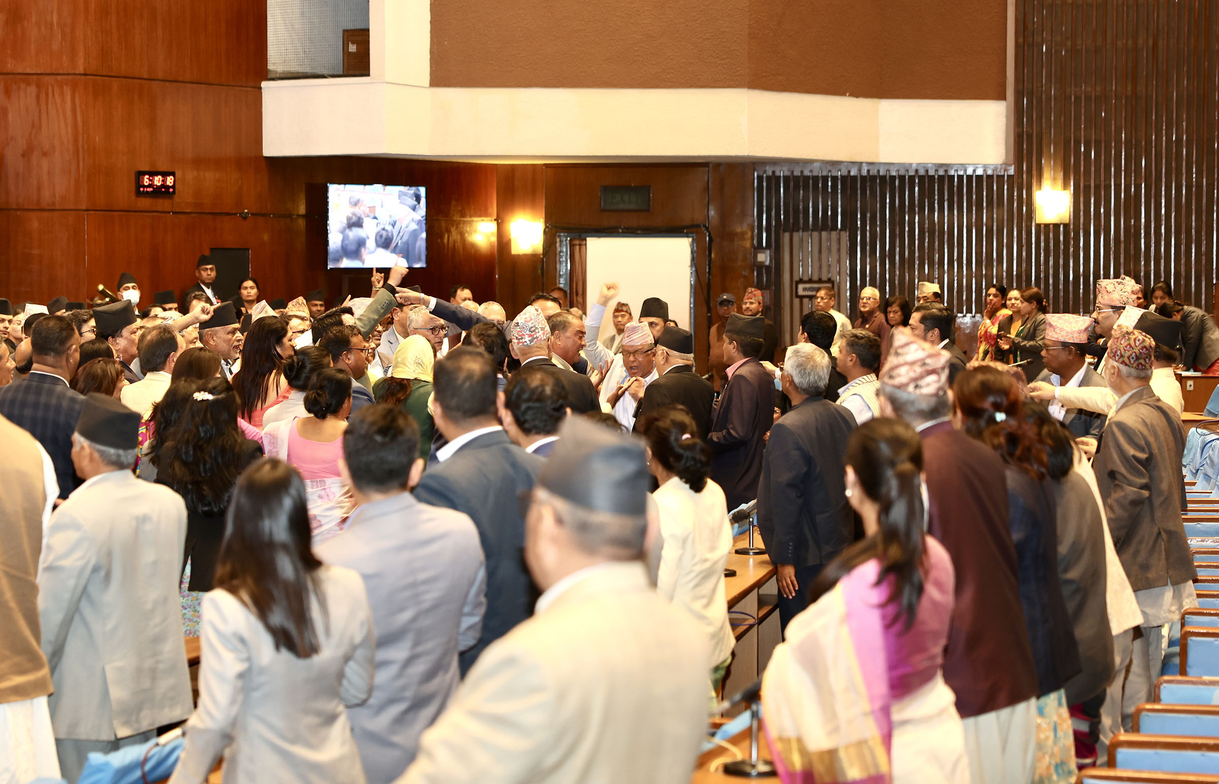 लामिछानेलाई रोक्न खोजेपछि एमालेका सांसद प्रतिकारमा उत्रिएका थिए। यसका कारण दुई पक्षका सांसदबीच धकेलाधकेलको स्थिति उत्पन्न भयो।