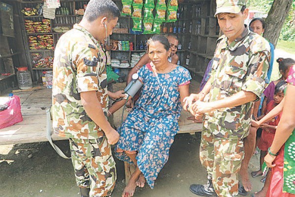 \"Nepaliकाठमाडौं । गत सोमबारको घटनापछि नेपाली सेना पनि टीकापुरमा खटिएको छ । सेनाले मार्छ, वित्यासै पार्छ जस्ता भ्रम पनि गाउँमा छन् । आजको कान्तिपुर दैनिकमाा खबर छ घटनालगत्तै आएको नेपाली सेनाले नेपाल प्रहरीसँग मिलेर यहाँका नागरिकको जीउधनको सुरक्षा गर्ने काम गरेको कर्णेल भुवनपूर्ण सत्यालले बताए ।   गाउँमा सेनाप्रतिको भ्रम हटाउन घरदैलोमा पर्चा बाँडेको छ । पर्चाको एकातिर नेपाली भाषा र अर्कोतिर थारू भाषाको प्रयोग गरिएको छ । सेनाले वितरण गरेको पर्चामा शान्तिसुरक्षा र सामाजिक सौहार्दलाई खलल पुर्‍याई तोडफोड, आगजनीजस्ता ध्वंसात्मक र हिंसात्मक कामका साथै कर्फ्यु आदेश उल्लंघन गरे शक्ति प्रयोग गर्ने चेतावनी छ ।   टीकापुरमा खटिएका सेनाका कर्णेल भुवनपूर्ण सत्यालले भने, ‘टीकापुरमा सुरक्षा भएन । साम्प्रदायिक द्वन्द्व भयो भनेर हामीलाई खटाइएको हो । यसका लागि हामी स्थानीयसँगको समन्वयमा काम गरिरहेका छौं ।’ कुनै समस्या, असुविधा, गुनासो भएमा सेनालाई टेलिफोनमा सम्पर्क गर्न पनि अनुरोध गरेको छ ।   पर्चा बाँडेपछि त्यसमा उल्लिखित फोनमा आफूहरूलाई परेको समस्या सुनाएपछि उनीहरूलाई सहयोग पनि गर्ने गरेको सेनाका कर्णेल भुवनपूर्ण सत्यालले बताए । उनका अनुसार लगातारको कर्फ्युका कारण मानिसहरू अस्पतालमा आएर औषधि गर्न सक्ने अवस्था भएन । सेनाको टोलीले गाउँमै पनि औषधोपचार गर्ने गरेको र अस्पताल पुर्‍याउनुपर्नेलाई गाडीमा राखेर अस्पताल पनि ल्याएको छ ।   टीकापुर नगरपालिका–९ एकतापुर शिविरकी २७ वर्षीया कल्पना चौधरीलाई ४ दिनदेखि कब्जियत भएकामा उनलाई टीकापुर अस्पताल पुर्‍याएको उनले बताए । शंकरपुरकी सुनिता टमटा टीकापुर अस्पतालमा सुत्केरी हुँदा रगत आवश्यक भएपछि सेनाका जवानले २ पिन्ट रक्तदान गरे । ‘टीकापुर बजारमा टहरामा व्यापार गरी गुजारा गरिरहेकाहरू इलाका प्रशासन कार्यालयमार्फत हामीकहाँ आएका छन् । ५ जनाको टहरा बनाइदिने कुरा पनि हामीले गरेका छौं,’ कर्णेल सत्यालले भने । शान्ति सुरक्षाको साथसाथै सेनाप्रतिको नकारात्मक हल्लालाई कम गर्न प्रयास पनि भइरहेको सेनाका कर्णेल सत्यालले बताए । उनले भने, ‘सेनाप्रतिको त्रास र नकारात्मक धारणा हटाउन नागरिकहरूसित घुलमिल हुने काम गरिरहेका छौं ।’ ‘टीकापुर घटनाका कारण यहाँका बाटाभरि सिसा फुटाइएका थिए । बाटामा जलाइएको मोटरसाइकल र टायर जलाएको कालो धुलो थियो । पुराना कुरा बिर्साउन सजिलो होस् भनेर सरसफाइ पनि गरेका छौं,’ उनले भने । सेनालाई टीकापुरको भौगोलिक जानकारी नभएकाले गाइडका रूपमा नेपाल प्रहरीले सहयोग गरिरहेको पनि कर्णेल सत्यालले बताए । ‘आन्तरिक द्वन्द्वका कारण सुरक्षाका लागि हामी खटिएका हौं । यहाँ बसुन्जेल विकास र शान्ति सुव्य
