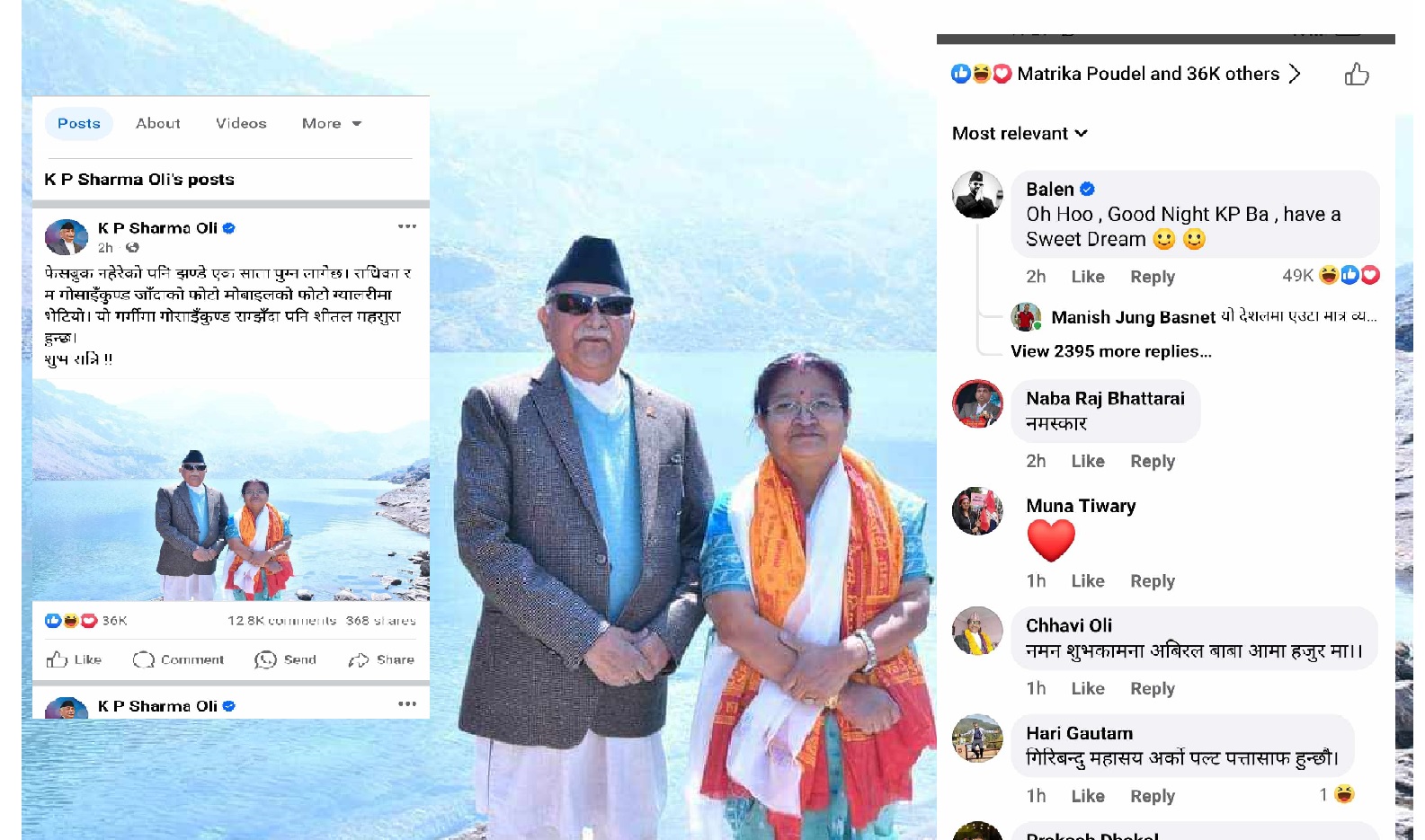 हिजो ओलीले श्रीमती राधिकासहित राखेको स्टाटसमा बालेनले गुड नाइट केपी बा कमेन्ट गरे।