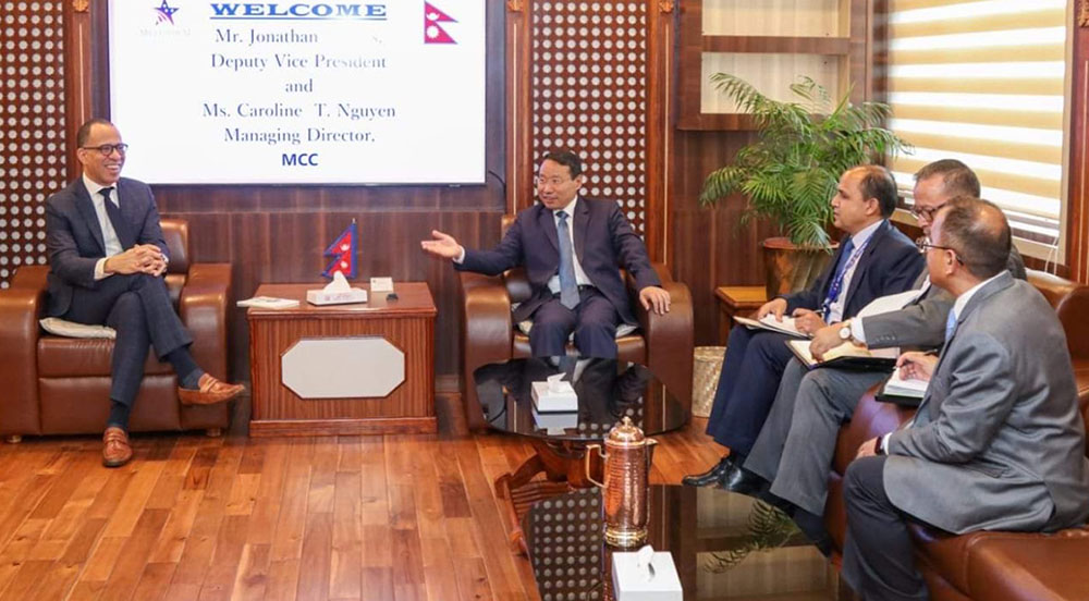 काठमाडौं । अर्थमन्त्री बर्षमान पुनसँग मिलेनियम च्यालेन्ज कर्पोरेशन (एमसीसी) उपाध्यक्ष जोनाथन ब्रुक्सले भेटवार्ता गरेका छन् ।