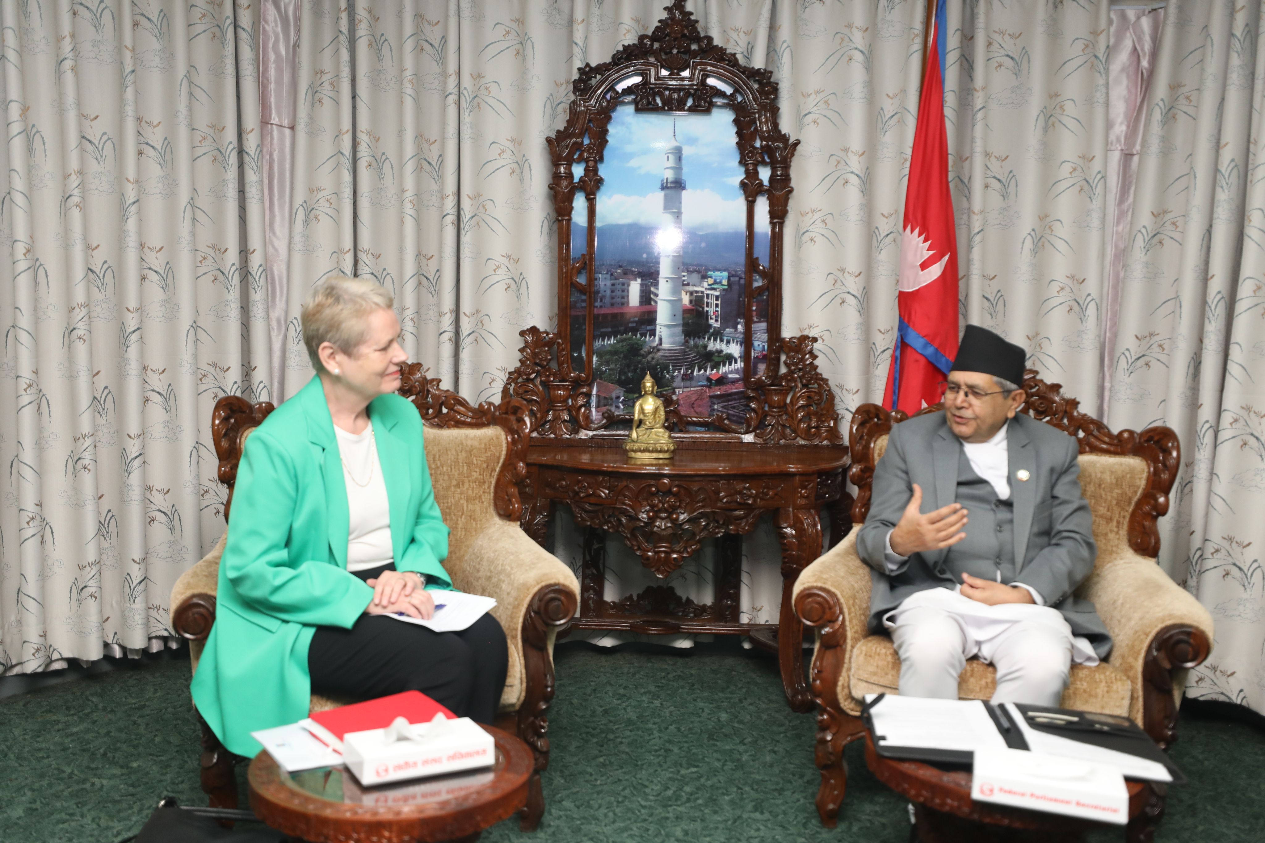 काठमाडौं । सभामुख देवराज घिमिरेसँग नेपालका लागि नर्वेजियन राजदूत तोरुन ड्रामडलले शिष्टाचार भेट गरेकी छिन् । सिंहदरवारस्थित सभामुखको कार्यकक्षमा आज भएको भेटमा दुई देशबीचको सम्बन्ध, विकास सहयोगलगायतका विषयमा छलफल भएको जनाइएको छ ।