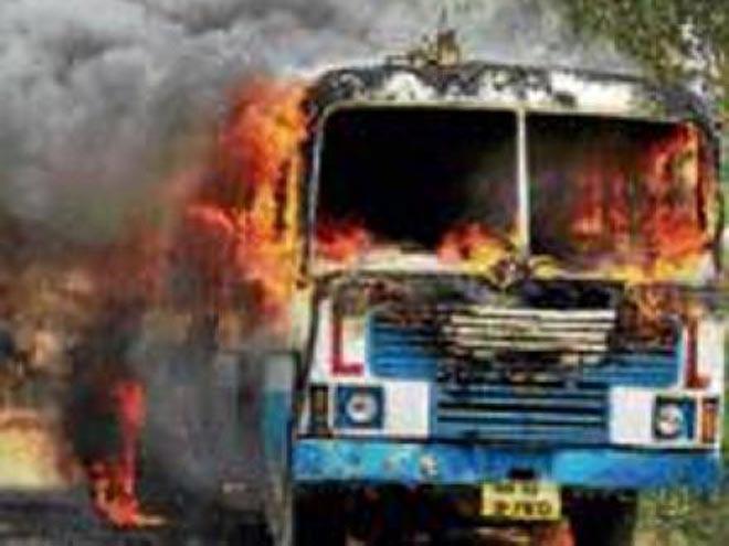 \"Bush\"सप्तरी । अनिश्चितकालीन आमहडतालको घोषणा गरेको संयुक्त मधेसी मोर्चाको कार्यकर्ताले शुक्रबार बिहान सप्तरीको भारदह–१ स्थित पूर्व–पश्चिम राजमार्गमा पर्ने इलाका प्रहरी कार्यालय भारदहको मूलगेटमै रोकिराखेको बसमा आगजनी गरेको छन् । सयौँको सङ्ख्यामा आएको प्रदर्शनकारीले ना ४ ख ४२६६ नम्बरको बसमा आगजनी गरेको प्रहरीले जनाएको छ । आगो लगाइएको बस एक हप्ताअगाडि प्रदर्शनकारीले ढुङ्गामुढा गरेर पल्टेको बस भएको र सो बसलाई इलाका प्रहरी कार्यालयअगाडि ल्याएर राखेको थियो ।