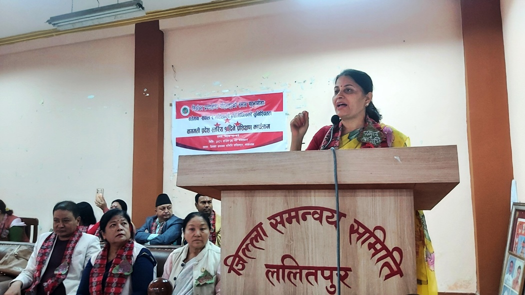 ‘एनसी वुमन लिडरसिप फोरम’द्वारा आयोजित ‘निर्वाचन प्रणालीमा महिलाहरूको समान सहभागिता: वर्तमान सवाल र महिला प्रतिनिधित्वको सुनिश्चितता’ विषयक बागमती प्रदेशस्तरीय एक दिने प्रशिक्षण कार्यक्रममा उनले राज्यको हरेक तहमा ५० प्रतिशत महिला सुनिश्चित गर्न समानुपातिक निर्वाचन प्रणालीबाट मात्रै सम्भव नहुने धारणा राखिन ।