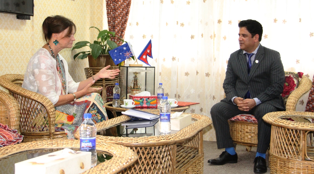 काठमाडौं । उद्योग, वाणिज्य तथा आपूर्तिमन्त्री दामोदर भण्डारीसँग नेपालका लागि अष्ट्रेलियाका राजदूत फेलिसिटी भोल्कले बिदाइ भेट गरेकी छिन् ।