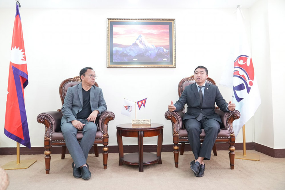 यसैबीच विहिबार राखेप सदस्य–सचिव टंकलाल घिसिङ र एन्फा अध्यक्ष पंकजविक्रम नेम्वाङबीच दशरथ रंगशालाको मैदान स्तरोन्नतीका विषयमा छलफल भएको छ । अन्तर्राष्ट्रिय स्तरको मापदण्ड अनुसार मैदान स्तरोन्नतीका लागि लाग्ने समय, वजेटलगायतका विषयमा दुई पक्षबीच त्रिपुरेश्वरस्थित राखेपमा छलफल भएको राखेपले जानाएको छ ।