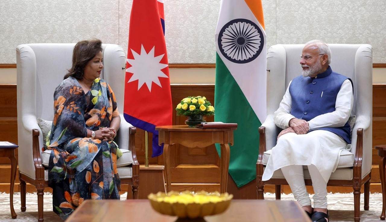 काठमाडौं । भारत भ्रमणमा रहेकी परराष्ट्रमन्त्री डा. आरजु राणा देउवाले भारतीय प्रधानमन्त्री नरेन्द्र मोदीसँग भेटवार्ता गरेकी छन् । भेट नेपाल भारत सम्बन्ध र यसको बहुआयामिक विविधताबारे छलफल भएको राणाले बताएकी छन् ।