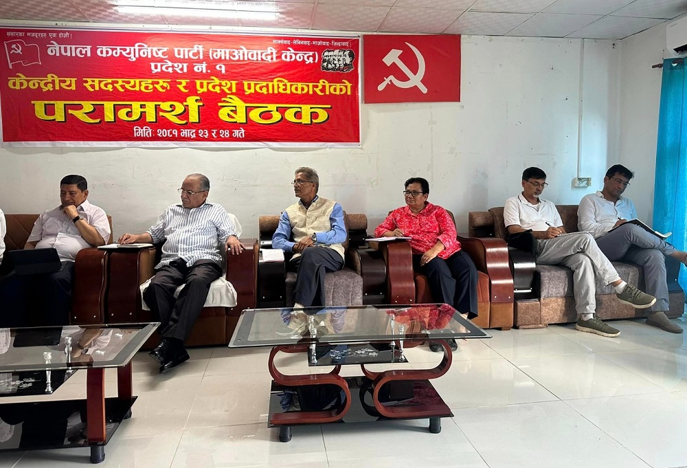 उदयपुर । नेकपा (माओवादी केन्द्र)को १ नम्बर प्रदेशस्तरीय परामर्श बैठक सोमबार सकिएको छ । उदयपुरको बेलका नगरपालिकामा दुई दिनसम्म चलेको बैठकमा प्रदेशका कार्यरत केन्द्रीय सदस्य र प्रदेश पदाधिकारी गरी ७० जनाले सुझाव दिएका थिए ।