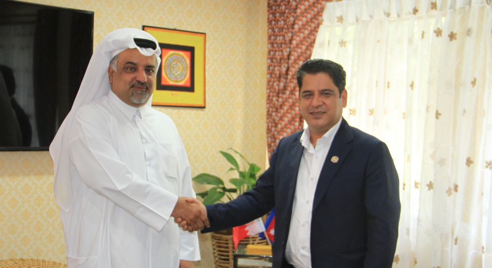 काठमाडौं । उद्योग, वाणिज्य तथा आपूर्तिमन्त्री दामोदर भण्डारीसँग नेपालका लागि कतारका राजदूत मिसाल मोहम्मद अलि अन्सारीले शिष्टाचार भेट गरेका छन् ।