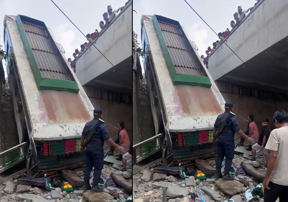 तनहुँ प्रहरीका अनुसार नयाँ र पुरानो दुई वटा पुलको बीचबाट बस तल खहरे खोलाको खोल्सामा खसेको हो ।