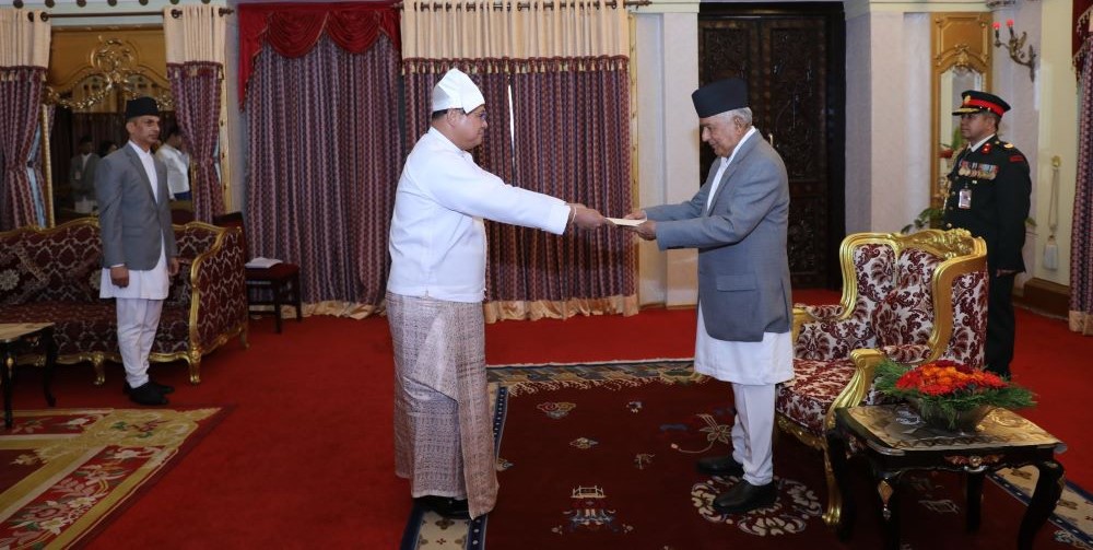 काठमाडौं । राष्ट्रपति रामचन्द्र पौडेलसमक्ष नेपालका लागि म्यानमार, अष्ट्रेलिया, फ्रान्सका आवासीय र जाम्बियाका गैरआवासीय राजदूतले आ–आफ्नो ओहोदाको प्रमाणपत्र पेश गरेका छन् ।