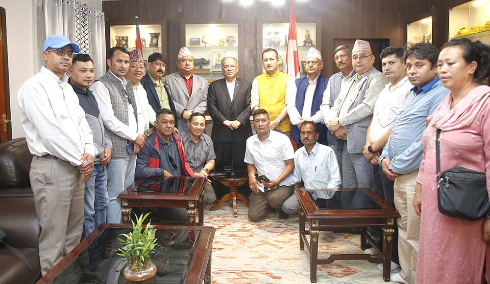 काठमाडौं । नेपाल कम्युनिस्ट पार्टी (माओवादी केन्द्र) का अध्यक्ष पुष्पकमल दाहाल ‘प्रचण्ड’ले नेपाल यातायात व्यवसायी राष्ट्रिय महासङ्घ र यातायात मजदुर सङ्गठनका पदाधिकारी तथा यातायात क्षेत्रका प्रतिनिधिसँग प्राकृतिक विपद्ले यातायात क्षेत्रमा सिर्जना गरेको समस्या समाधानबारे छलफल गरेका छन् ।