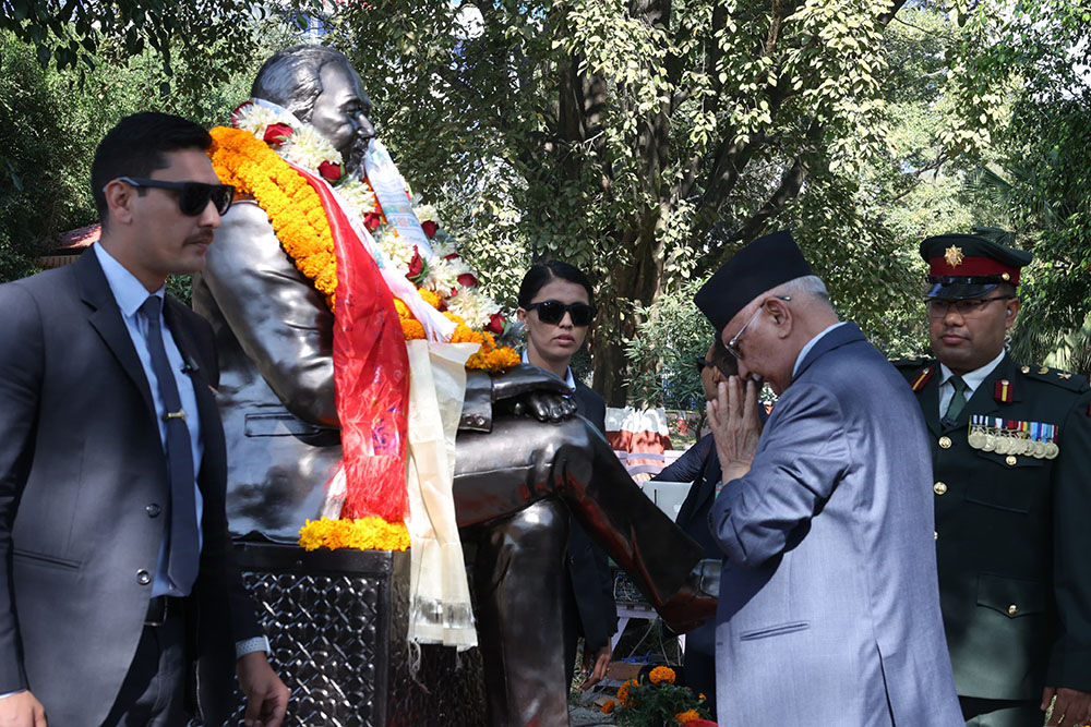 काठमाडौँ । प्रधानमन्त्री केपी शर्मा ओलीले मानवअधिकारवादी नेता तथा पूर्व मन्त्री पद्मरत्न तुलाधरको छैटौँ स्मृति दिवसका अवसरमा उनीप्रति श्रद्धाञ्जलि व्यक्त गरेका छन् ।