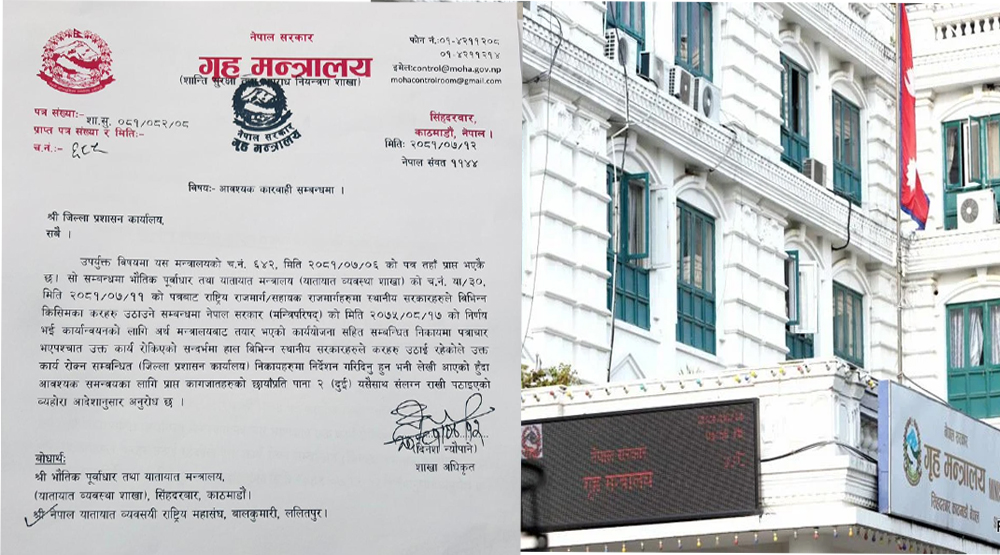 यो सम्बन्धमा यातायात व्यवसायीले यही कात्तिक ५ गते यसलाई रोक्न आग्रह गर्दै भौतिक पूर्वाधार तथा यातायात मन्त्रालयमा ध्यानाकर्षण गराएका थिए । सो सम्बन्धमा निर्णय गर्दै यातायात मन्त्रालयले कात्तिक ११ गते मन्त्रालयले यसलाई रोक्न सहयोग गर्न गृह मन्त्रालयलाई सिफारिस गरेको थियो । यातायात मन्त्रालयको पत्र अनुसार गृहले सोमबार ७७ वटै जिल्ला प्रशासन कार्यालयलाई परिपत्र गरेको हो ।