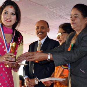 नेपाल बाल सङ्गठनले ५१ औँ राष्ट्रिय बालदिवसको अवसरमा आयोजित कार्यक्रममा वरिष्ठ सङ्गीतकारलाई पुरस्कार वितरण गर्दै महिला बालबालिका तथा समाजकल्याण मन्त्री निलम केसी । तस्बिर / अच्युत रेग्मी, रासस \"bakdibas_ktm\"