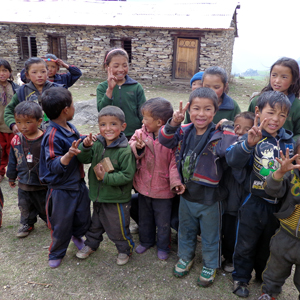 बाल दिवसका अवसरमा खुसियाली मनाउँदै उत्तरी गोरखाको छेकम्पारका बालक । यहाँका अधिकांश बालबालिका बिद्यालय छाडेर गुम्बामा पढ्न जान्छन् । तस्बिर / प्रशन्न पोखरेल, गोरखा, रासस \"baldibas_gorkha\"