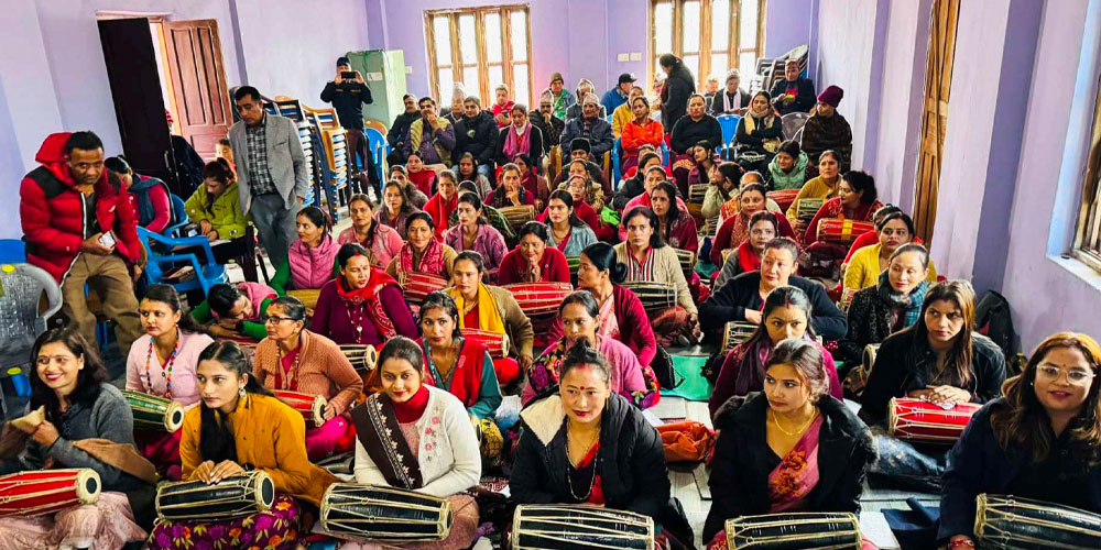 बुटवल । सांस्कृतिक मौलिकता जोगाउने उद्देश्यले बुटवल उपमहानगरपालिका १५ सेमलारमा बाध्यवादन तालिम गरिएको छ । १५ दिने तालिम अन्तर्गत स्थानीय महिलाहरुका लागि मादल, खैजडी र मजुरा बजाउन सिकाइएको हो ।