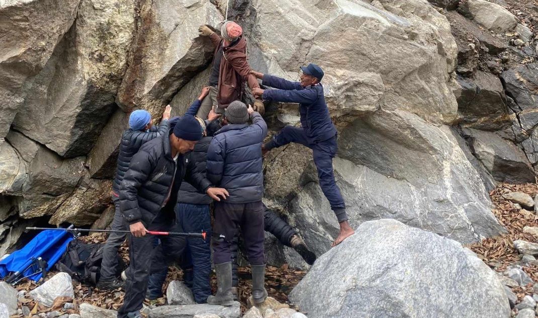 सोलुखुम्बु । सोलुखुम्बुमा भीरबाट लडेर फसेका जर्मन नागरिकको उद्धार गरिएको छ । खुम्बु पासाङल्हामु गाउँपालिका –३ मा पर्ने टोकटोक र बैंकरबिचमा रहेको जंगलमा बिहीबार विहान साढे ११ बजे ४१ वर्षीय जर्मन नागरिक माइकल हेनरिचको उद्धार गरिएको जिल्ला प्रहरी कार्यालय सोलुखुम्बुका प्रहरी नायब उपरीक्षक द्वारिकाप्रसाद घिमिरेले जानकारी दिए ।