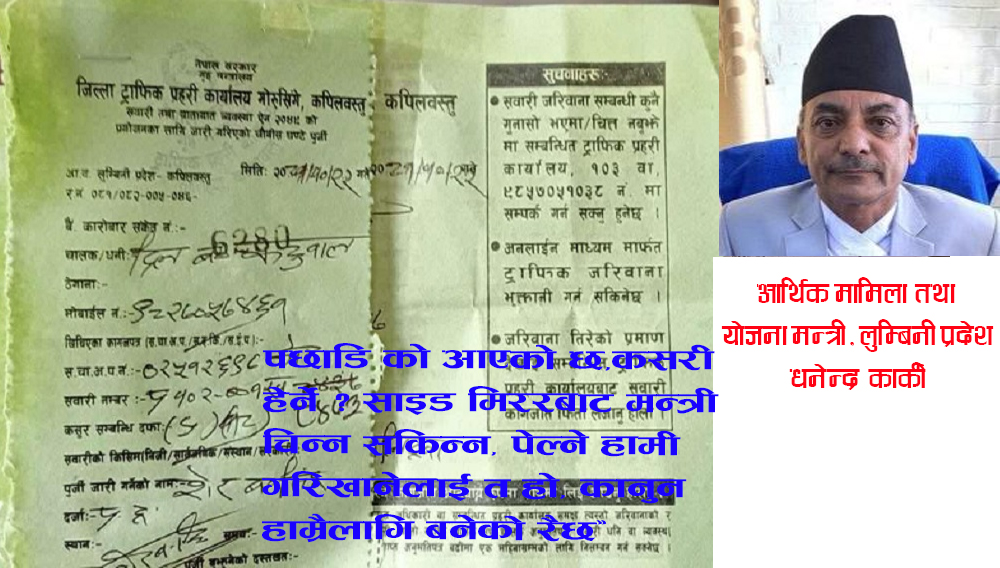 कपिलवस्तु । लुम्बिनी प्रदेशका आर्थिक मामिला तथा योजना मन्त्री धनेन्द्र कार्कीको गाडीलाई साइड नदिएको आरोपमा ३ वटा मालवाहक ट्रकलाई कारबाही गरिएको छ।