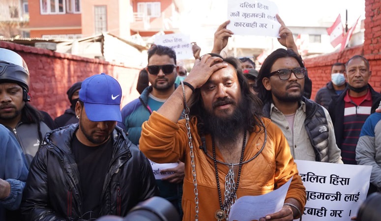 दलित अधिकारकर्मी खगेन्द्र सुनारको नेतृत्वमा केन्द्रीय कार्यालय, सानेपा पुगेको टोलीले विरोध प्रदर्शन गरेको हो ।