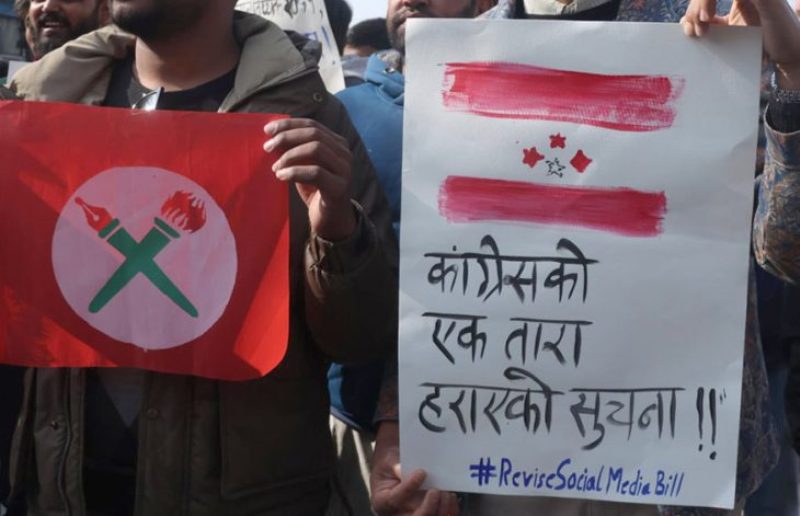साथै, ‘डियर केपी बा समृद्ध नेपालमा बोल्न पाइन्न र?’, ‘नियमन चाहिएको हो, नियन्त्रण होइन’, ‘प्रश्नसँग डराएको सरकार’ लगायतका नारा सहित विरोध गरिएको थियो ।