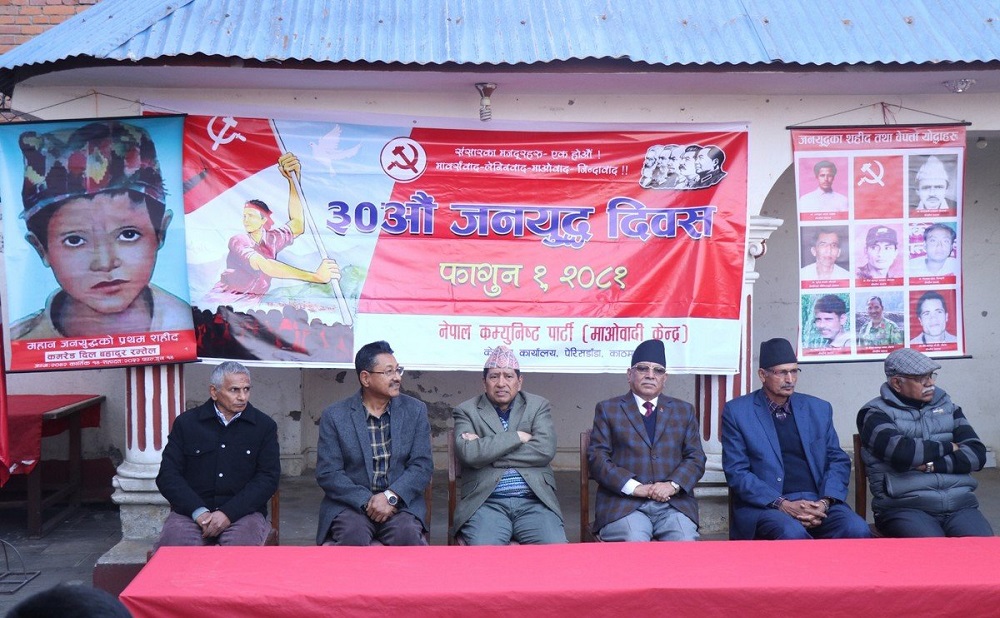 काठमाडौं। जनयुद्धको नेतृत्वकर्ता पार्टी माओवादी केन्द्रले प्रत्येक वर्ष फागुन १ गतेलाई जनयुद्ध दिवसको रूपमा मनाउँदै आएको छ। पार्टीले जनयुद्ध दिवसको अवसरमा बिहीबार केन्द्रीय कार्यालयमा विशेष कार्यक्रमको आयोजना गरेको छ ।