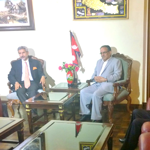 \"prachanda_jayashankhar_vet\"काठमाडौं । भारतीय प्रधानमन्त्री नरेन्द्र मोदीको विशेष दुतका रुपमा शुक्रबार नेपाल आएका भारतीय विदेश सचिव एस जयशंकरले नेकपा एमालेका अध्यक्ष केपी शर्मा ओली, राष्ट्रपति रामबरण यादव पछि एकिकृत नेकपा माओवादीका अध्यक्ष पुस्पकमल दाहाल ‘प्रचण्ड’लाई साँझ १ घण्टा भेट गरेका छन् । नेपालको संविधान निर्माण प्रक्रिया अन्तिम अवस्थामा पुग्दा समेत रोक्न चाहेको भारतले प्रधानमन्त्रीका दुत का रुपमा जयशंकरलाई नेपाल भ्रमणबाट पठाउनुलाई अर्थपूर्ण रुपमा हेरिएको छ । यसअघि ओली र यादवसँगको भेटका क्रममा भएका कुराकानी बाहिर नआएपनि आन्दोलनरत मधेशवादी दललाई मिलाएर जान सुझाएको स्रोत बताउँछ । एमाले अध्यक्ष ओलीले भेटका क्रममा संविधान जारी गरेपछि पनि आन्दोलनरत दलका माग सुनुवाई हुने ठाउँ संविधान संशोधनमार्फत बाँकी रहने बताएका थिए । अध्यक्ष प्रचण्डसँगको भेटमा एमाओवादी नेताहरु बाबुराम भट्टराई र नारायणकाजी श्र्रेष्ठ छन् भने नेपालका लागि भारतीय राजदुत  रंजित रे समेत साथै रहेका छन् । प्रचण्डका स्वकिय सचिव चुडामणी खड्काका अनुसार जयशंकर र प्रचण्डबिच सिमाक्षेत्रको सुरक्षा चासो तथा जारी संविधान निर्माणको बारेमा छलफल भएको थियो । जयशंकरले मधेशवादी आन्दोलनलाई मिलाएर जान आग्रह गरेका थिए भने प्रचण्डले मिलाउने प्रयत्न भइरहेको र संविधान जारी भएपछि पनि मिलाउन सकिने बताएका थिए । लाजिम्पाट स्रोतका अनुसार संविधान निर्माणको प्रक्रिया रोकि आन्दोलनरत पक्षसँग तत्काल वार्ता थाल्न जयशंकरले आग्रह गरेपनि अहिले संविधान निर्माण प्रक्रिया नरोकिने प्रचण्डले बताएका थिए । प्रचण्डले जयशंकरलाई भ्रमणको समय नमिलेको र भारतलाई खल्लो लाग्न सक्ने बताएका थिए । भ्रमण समय केही अघि या केही पछि भएको भए दुबै पक्षको हितमा हुनेथियो भनि भनेका थिए । राष्ट्रपति र आन्दोलनरत मधेशी दलबाहेक सबै नेताहरुको एउटै कुरा सुनेपछि जयशंकर निराश भएको समेत स्रोतले बताएको छ ।