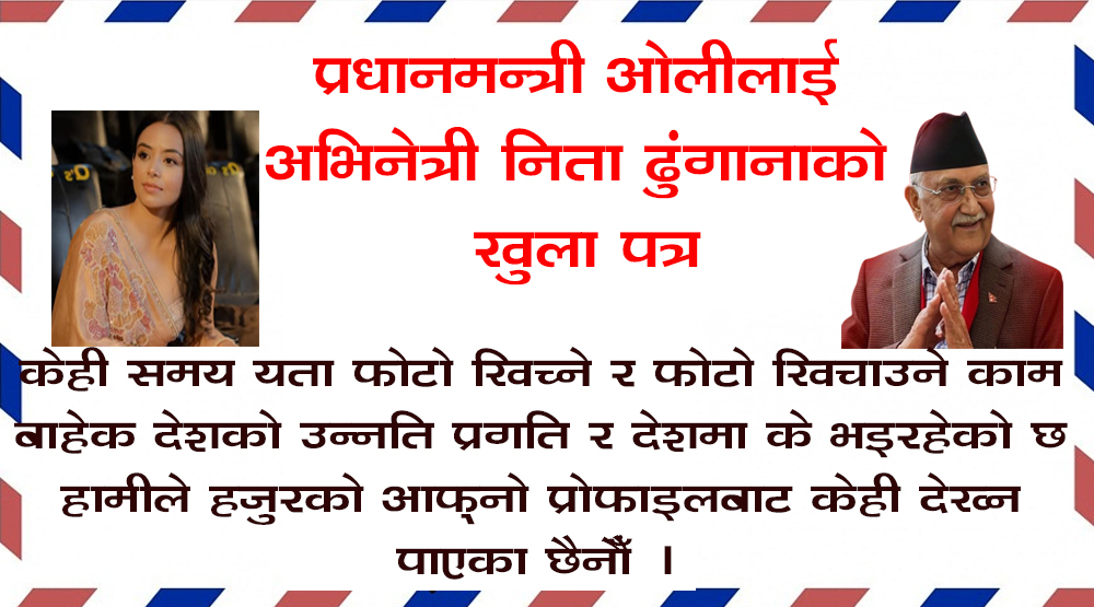 कुनै समय हाम्रो देशको प्रधानमन्त्री केपी शर्मा ओली ज्यू जस्तै हुनुपर्छ भनेर ठाटले भन्ने म कलाकार आज भ्रममा छु। मलाई पनि हजुरसँग वार्तालाप गर्न मन छ भेट्न मन छ । फोटो खिचाउन मन छ । तर सँगसँगै धेरै प्रश्नहरु पनि छन् । जुन मनमा गडिएर बसि रहेका छन् ।