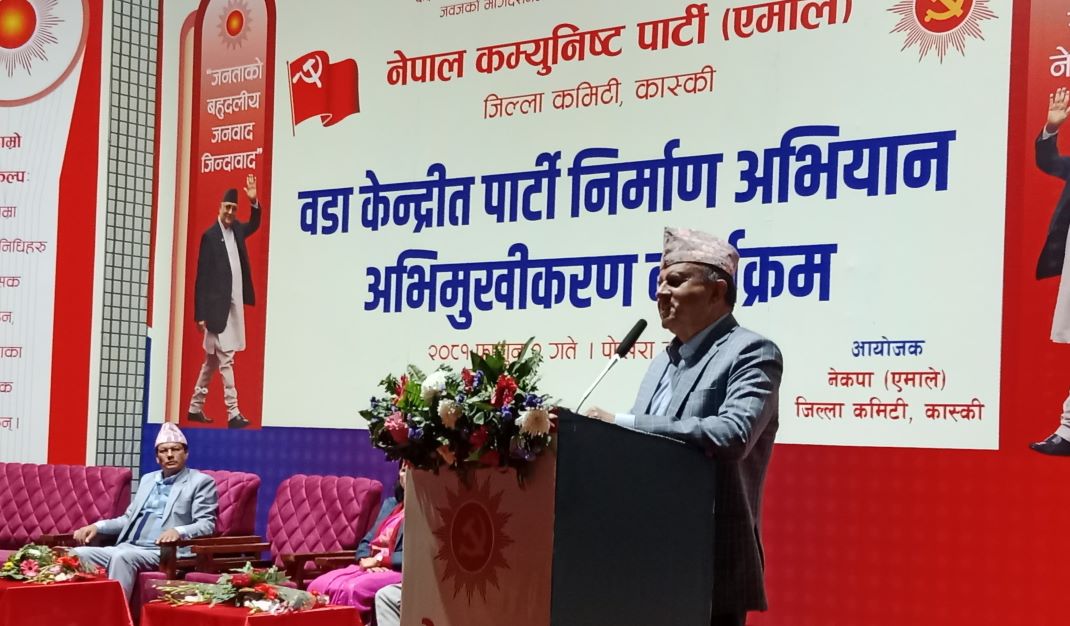 नेकपा (एमाले) कास्कीले शुक्रबारदेखि थालेको तीन महिने वडा केन्द्रित पार्टी निर्माण अभियान अन्तर्गतको अभिमुखीकरण कार्यक्रमलाई शुक्रबार पोखरामा सम्बोधन गर्दै उनले पार्टीमा युवालाई आकर्षण गर्ने कार्यक्रमलाई प्राथमकिता दिनुपर्ने बताए । “४० वर्ष मुनिको मतदाता संख्या ६० प्रतिशत छ” उनले भने, “चुनावमा ४० वर्ष मुनिको मतदाता नै निर्णायक हुने भएकाले युवालक्षित गतिविधि आवश्यक छ, यसमा पार्टीका सबै तहका कमिटीले ध्यान दिनुपर्छ ।”