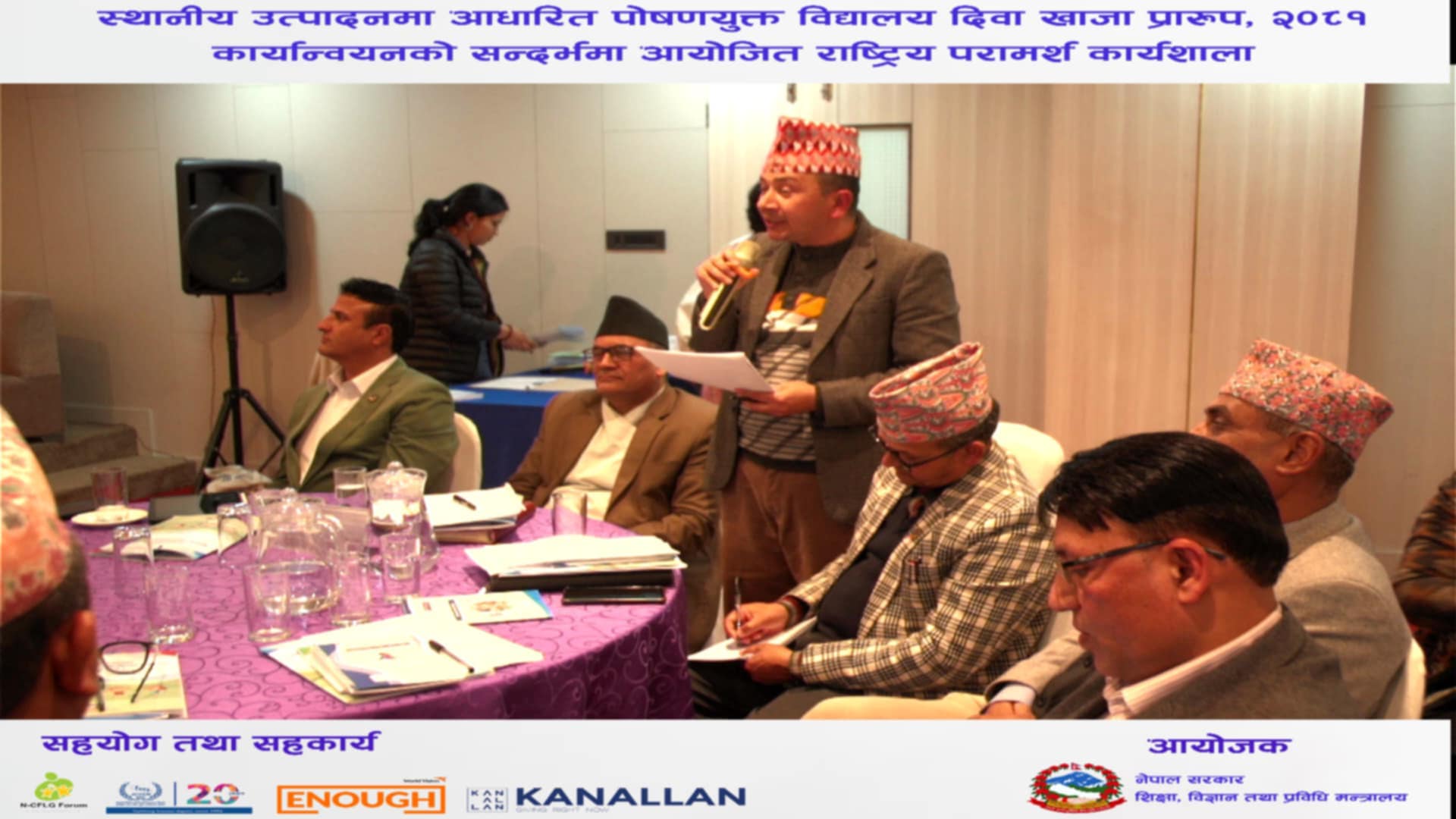 नेपाल सरकार शिक्षा विज्ञान तथा प्रविधि मन्त्रालयको आयोजना तथा बालमैत्री स्थानीय शासन राष्ट्रिय मञ्च, जागृति बाल तथा युवा सरोकार नेपालको सहकार्य, वल्र्डभिजन इन्टरनेशनल नेपाल, क्यानालको सहयोगमा स्थानीय उत्पादनमा आधारित पोषणयुक्त विद्यालय दिवा खाजा प्रारुप, २०८१ कार्यान्वयनको सन्दर्भमा राष्ट्रिय परामर्श कार्यक्रम आयोजना गरिएको थियो ।