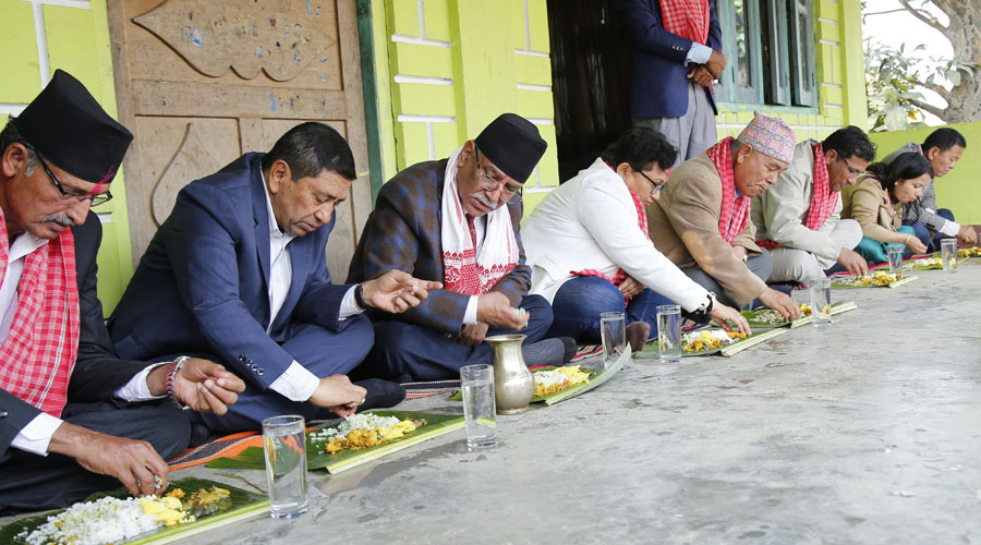 अध्यक्ष प्रचण्ड, वरिष्ठ उपाध्यक्ष नारायणकाजी श्रेष्ठ, उपाध्यक्ष अग्नि प्रसाद सापकोटा, पम्फा भुसाल, महासचिव देव गुरुङ, उपमहासचिव वर्षमान पुन लगायतका शीर्ष नेता सँगै बसेर खाना खाएका हुन् ।
