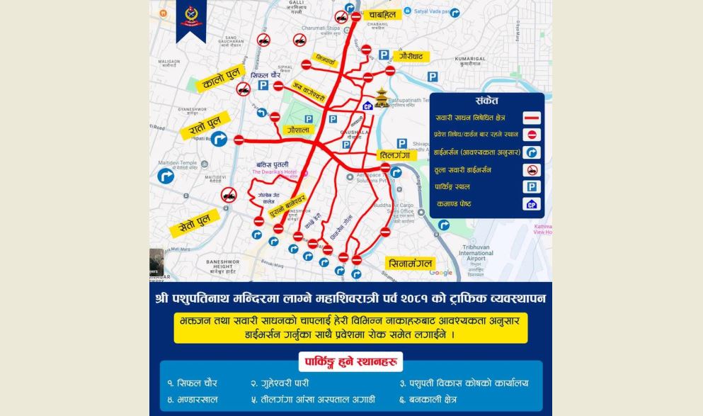 काठमाडौं । महाशिवरात्रि पर्वका अवसरमा पशुपत क्षेत्रमा भक्तजनहरुको भिड बढेकाले त्यस क्षेत्रमा सवारी निषेध गरिएको छ ।