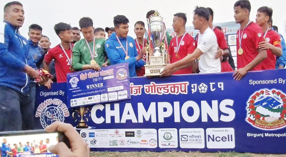 पर्सा । वीरगन्ज गोल्डकपको उपाधि साविक विजेता नेपाल पुलिस क्लबले जितेको छ । वीरगन्जको आदर्शनगर रङ्गशालामा शनिबार भएको फाइनलमा पुलिसले मच्छिन्द्र फुटबल क्लबलाई टाइब्रेकरमा ३–१ गोलले हराउँदै उपाधि रक्षा गरेको हो ।